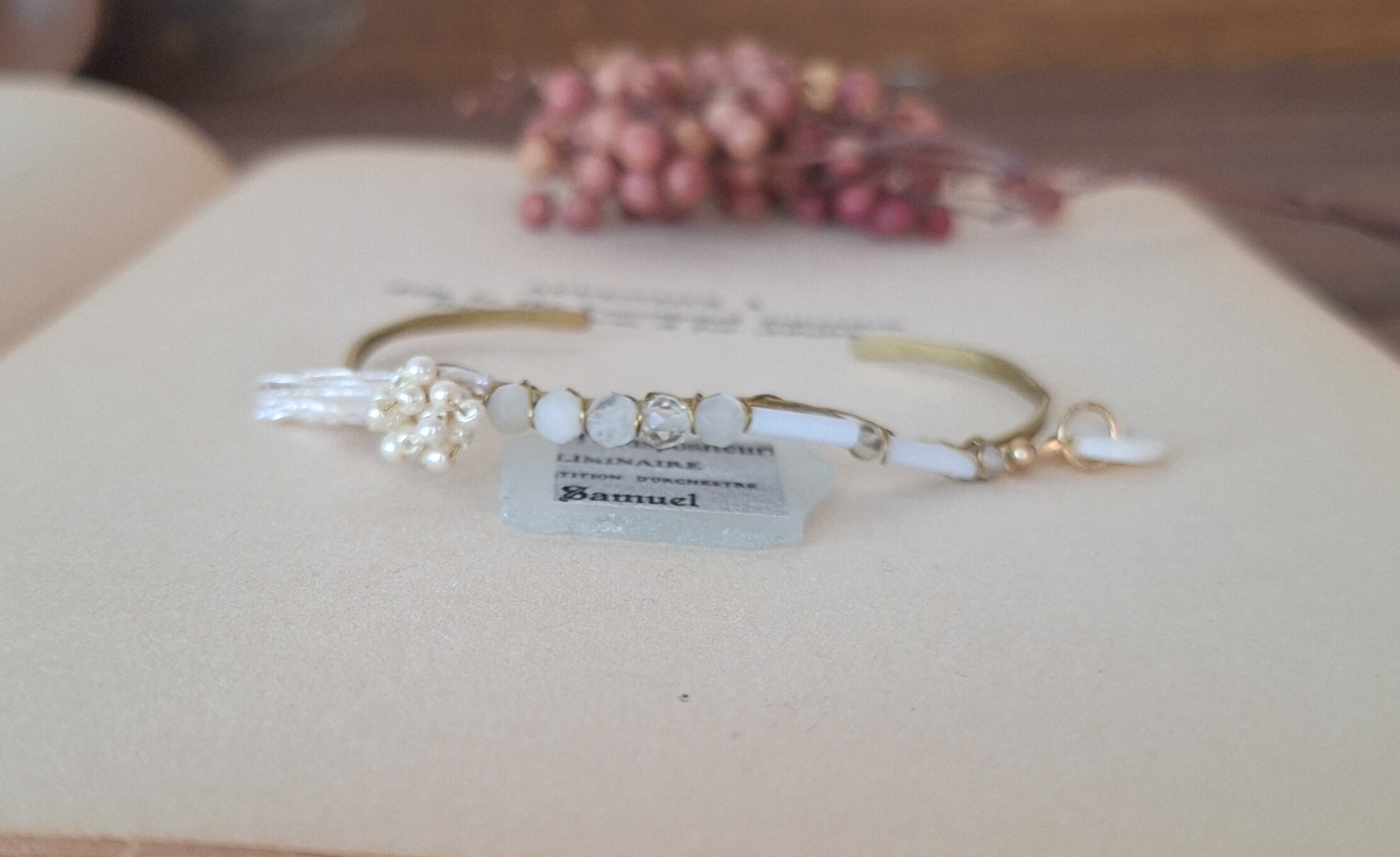 6月の誕生石「ムーンストーン」をあしらった、やわらかな光を宿すバングル。
