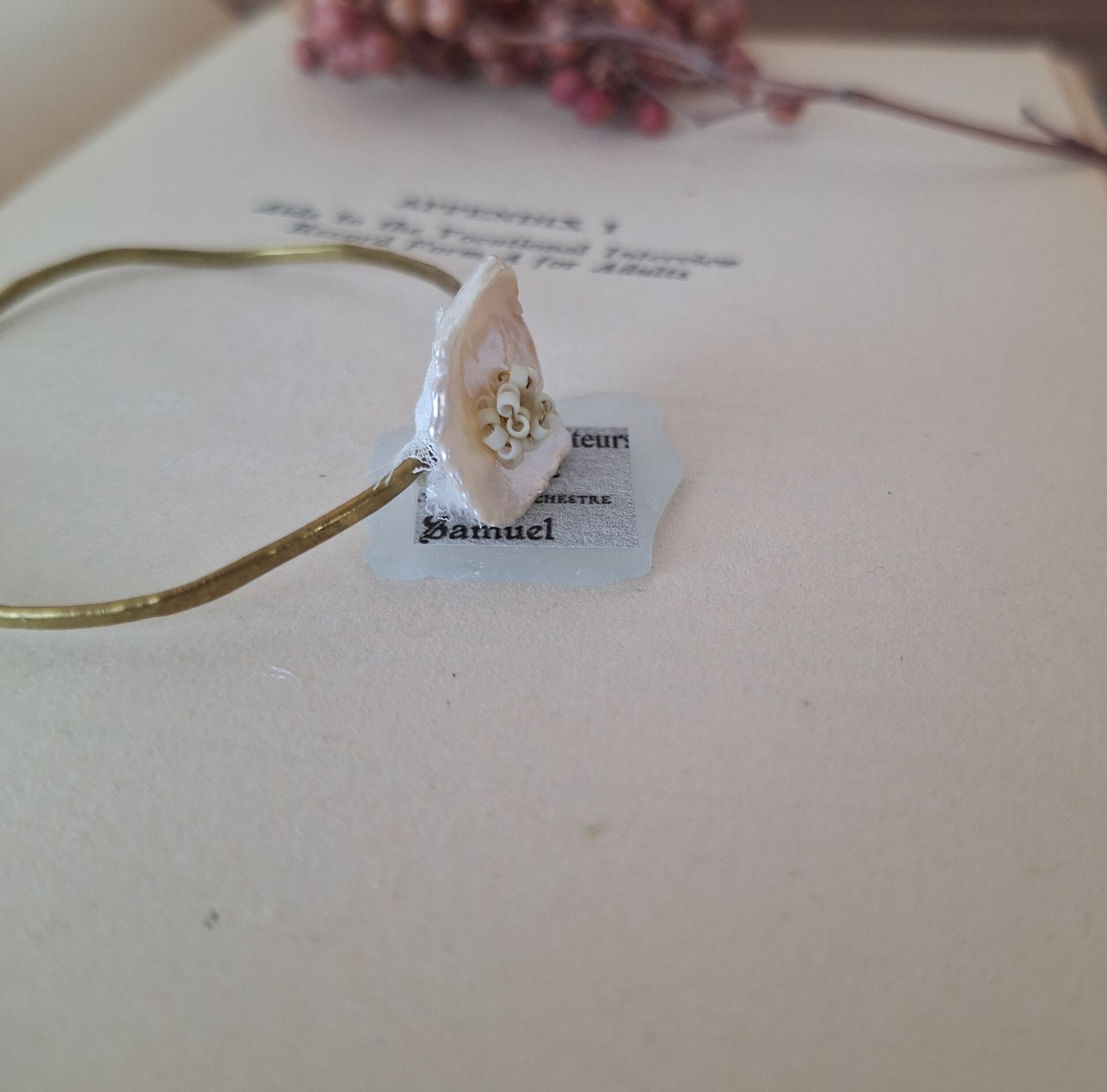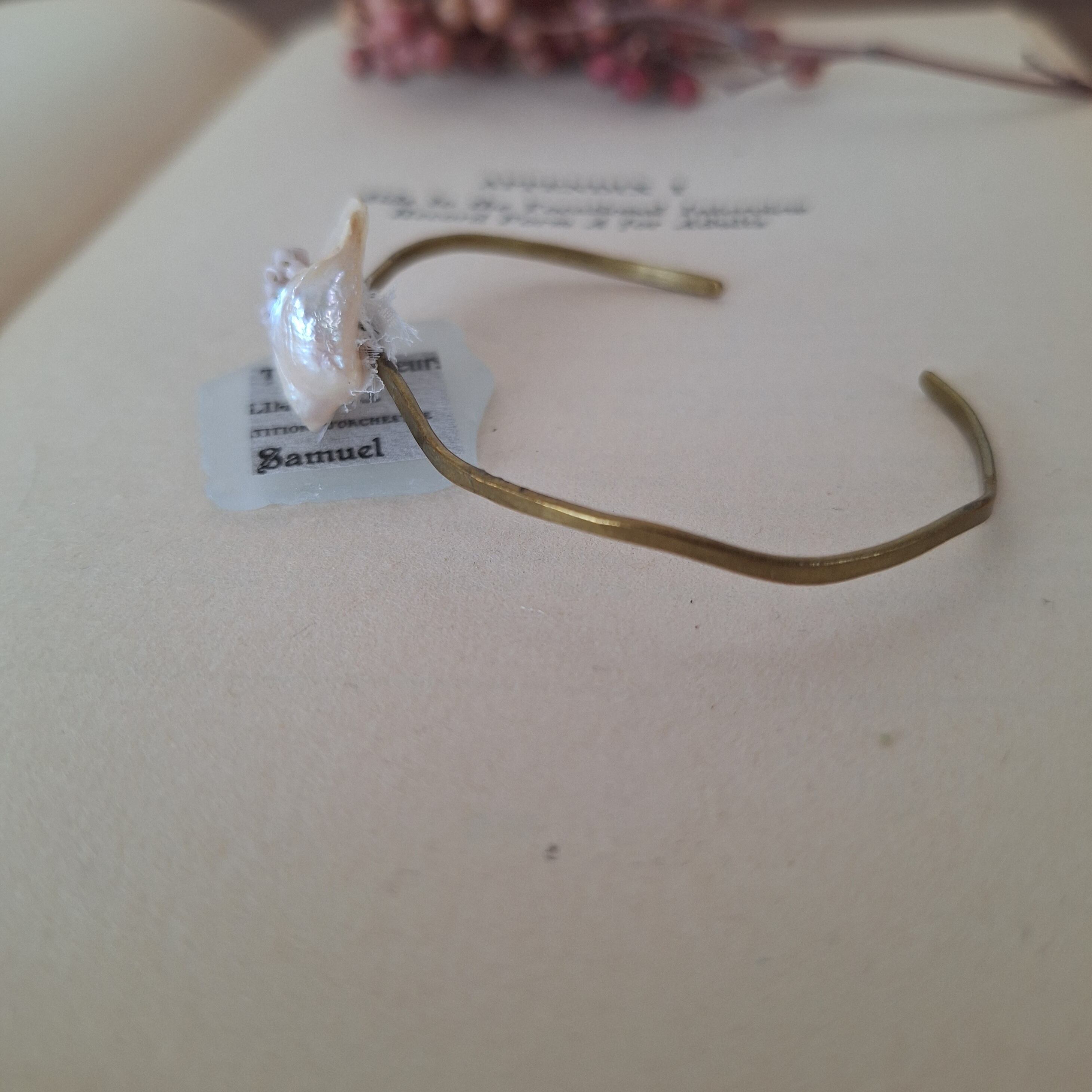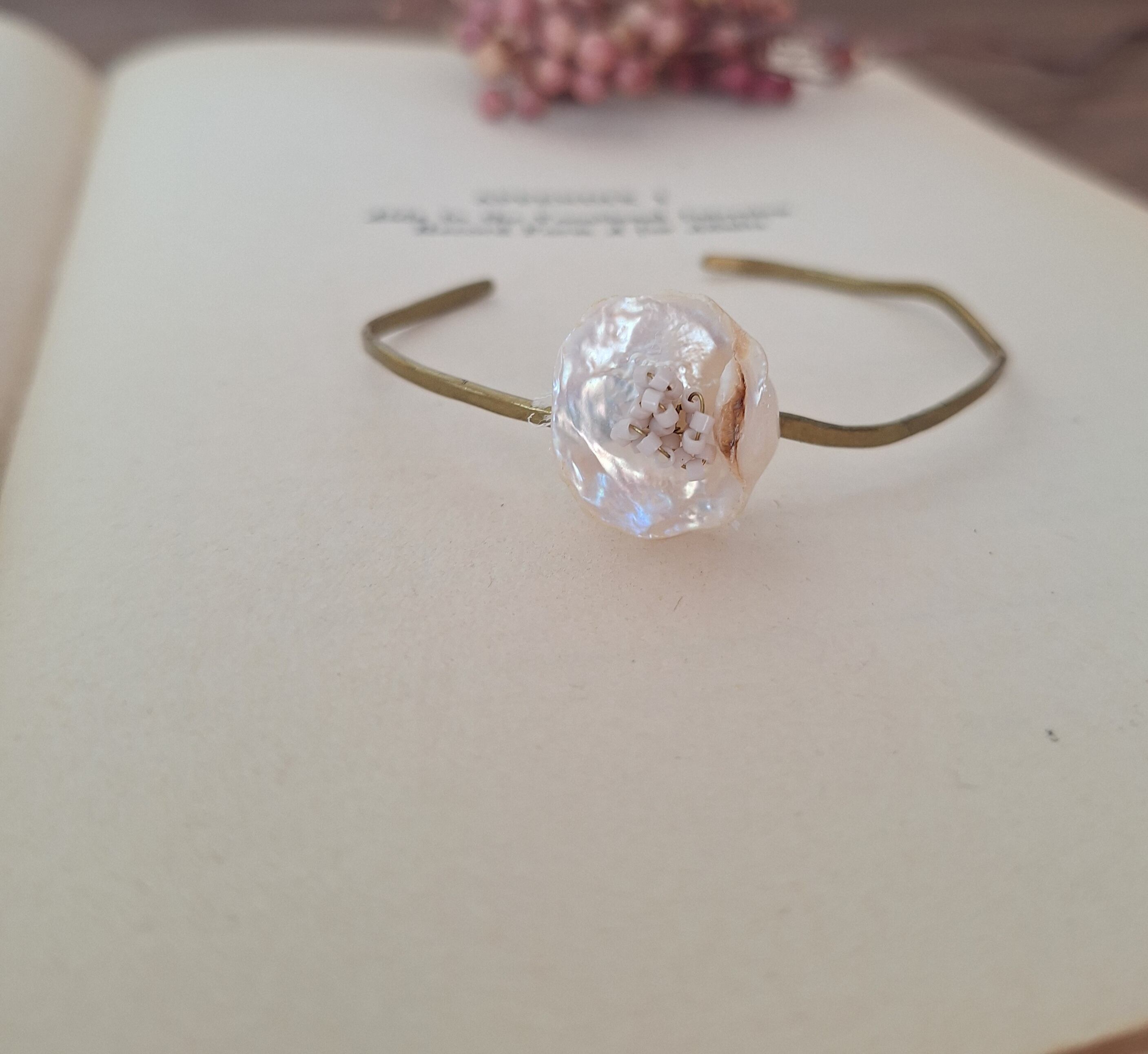 光を受けるたびに淡くきらめき、幻想的な雰囲気を纏わせる特別なバングルです。