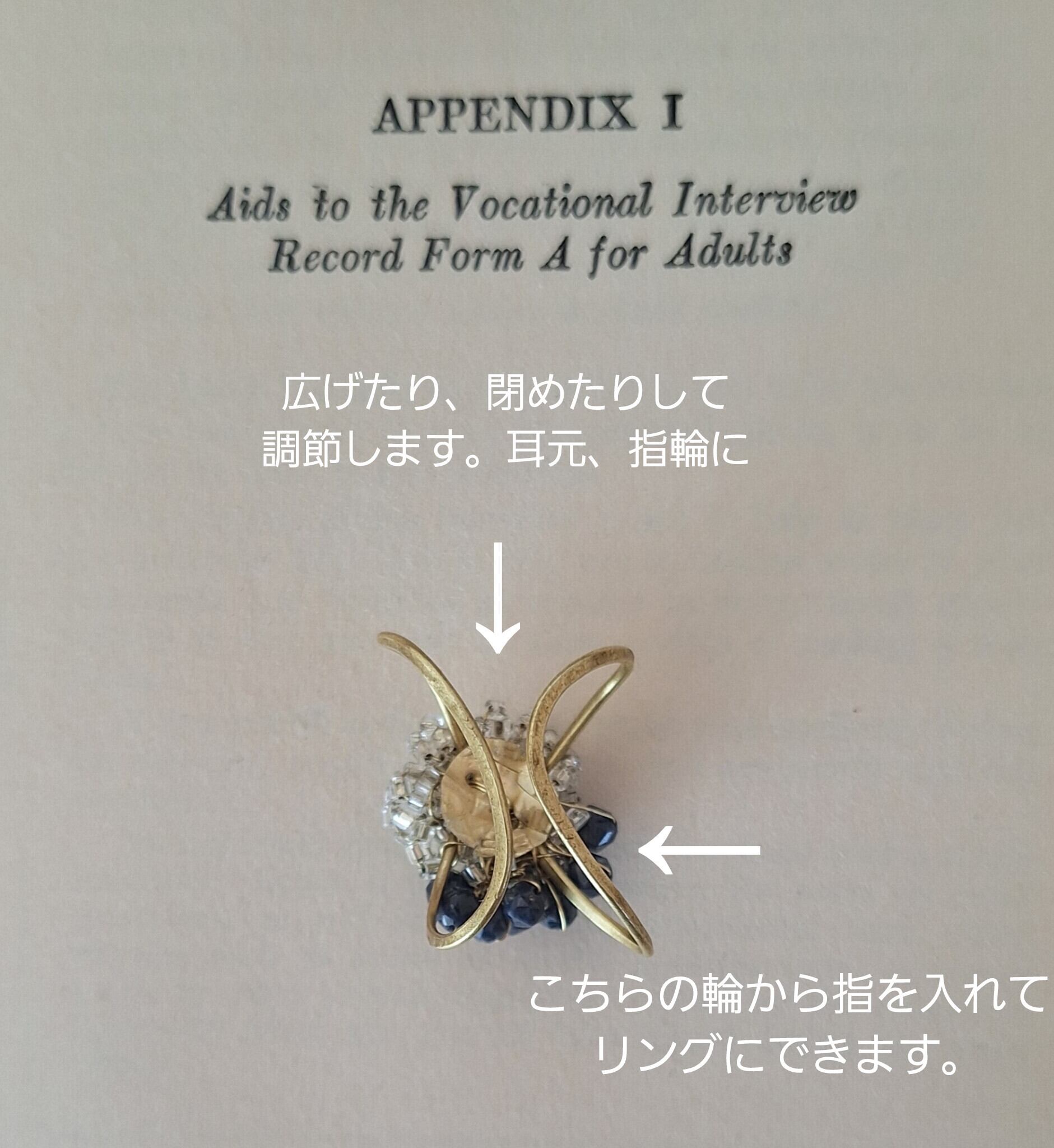耳元にも指先にも身につけられる2way仕様。真鍮ワイヤーでやわらかく調整できるので、サイズを気にせずお使いいただけます。