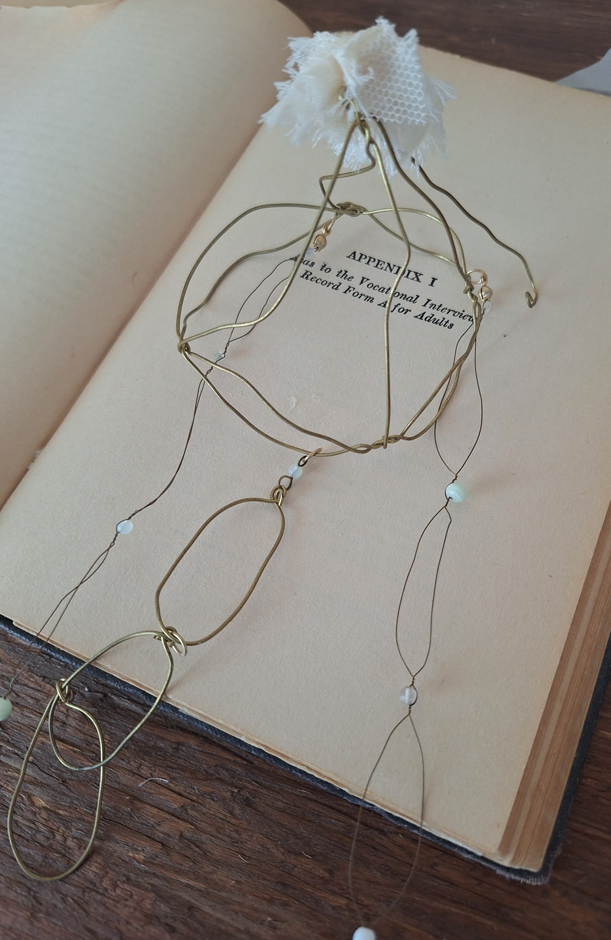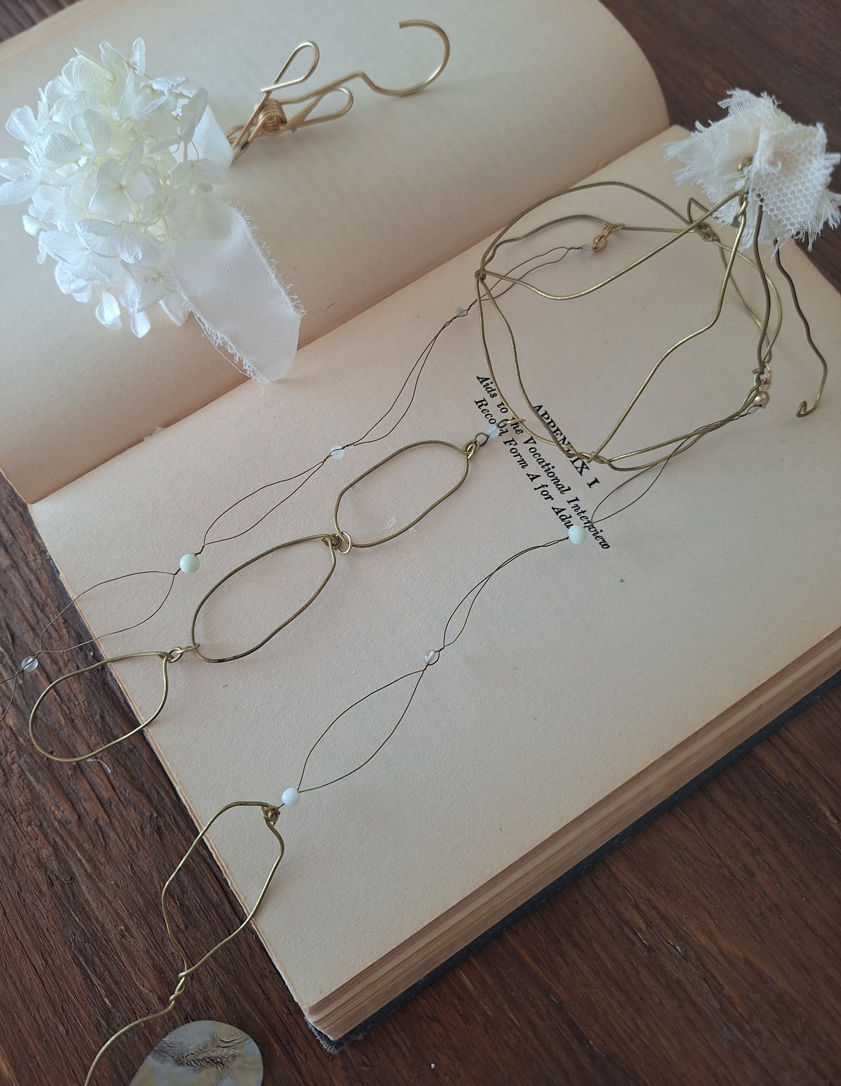 素材:ヴィンテージビーズ、真鍮ワイヤー、スパンコール、メタルパーツ他