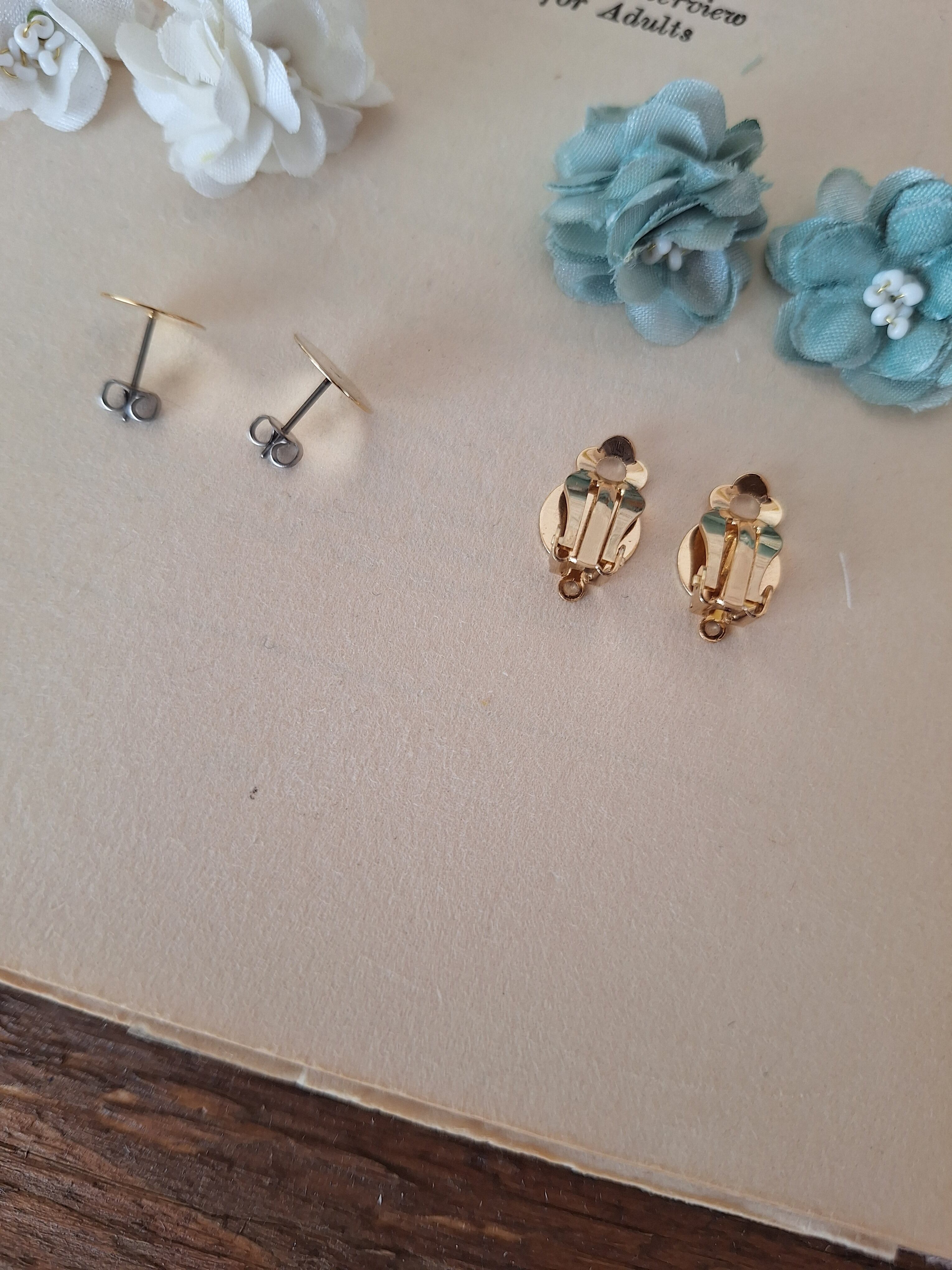耳元を彩るピアス(イヤリング)と、 胸元を飾る小ぶりなブローチ。