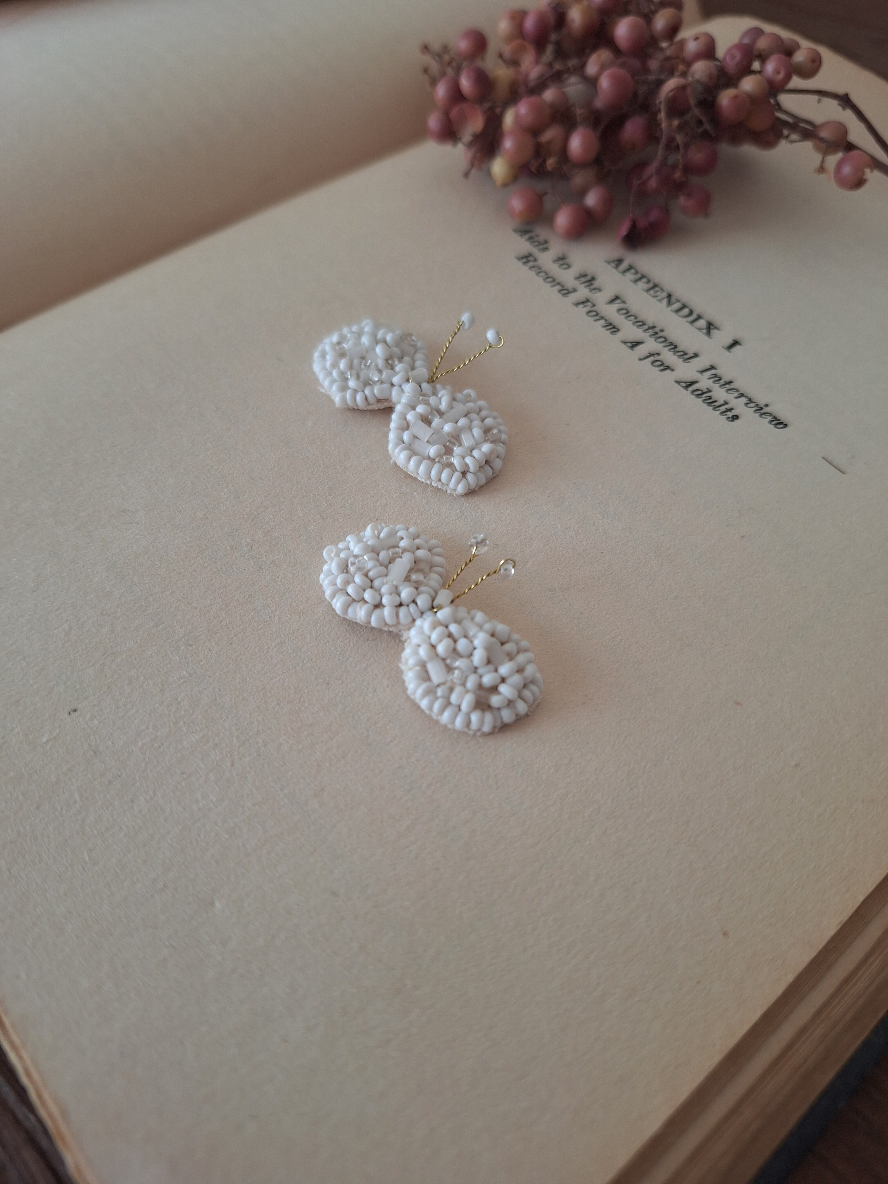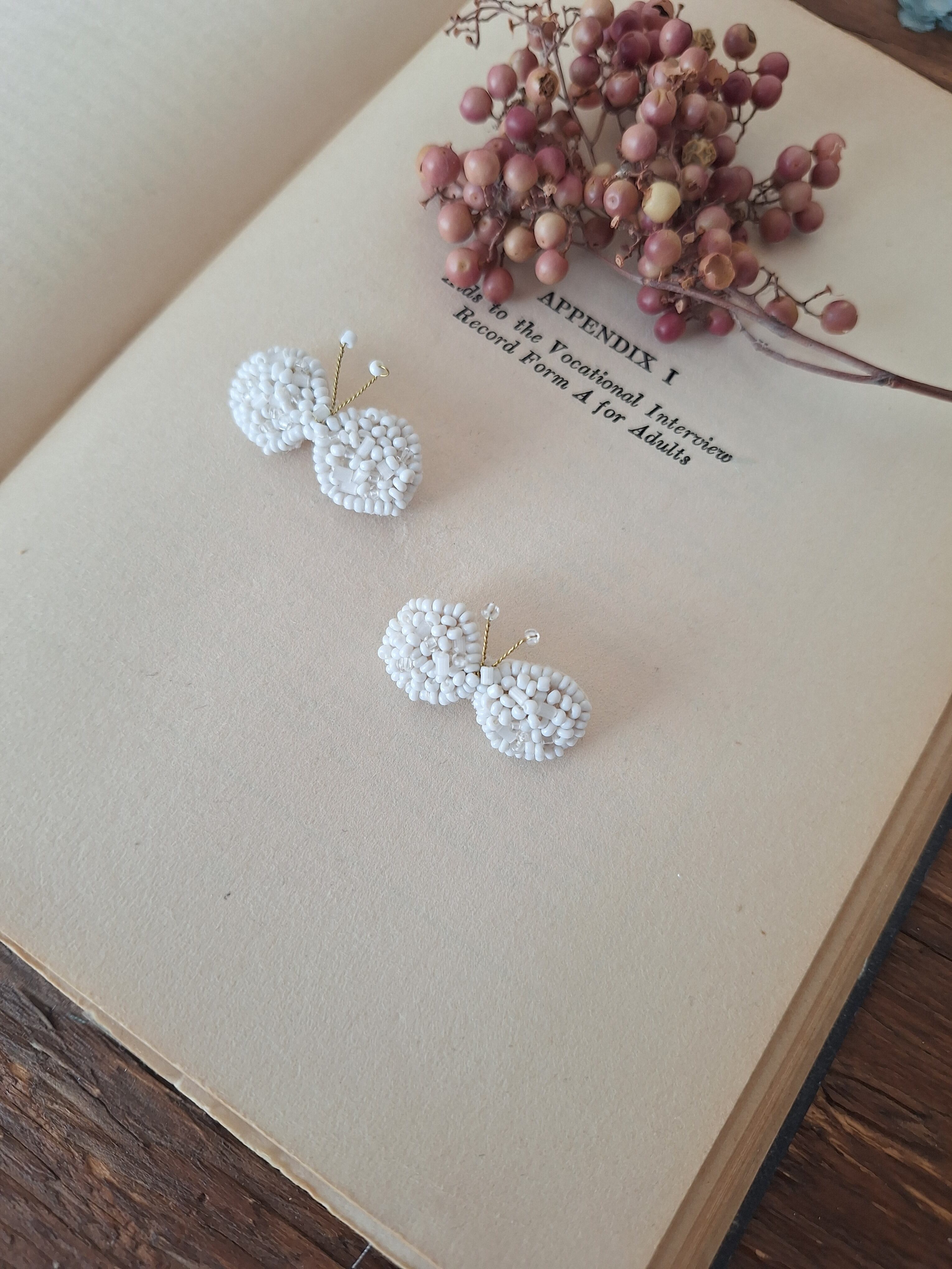 時を経た素材ならではの温もりと、控えめながらも存在感のある小さな白蝶が、日常にも特別なシーンにも寄り添います。