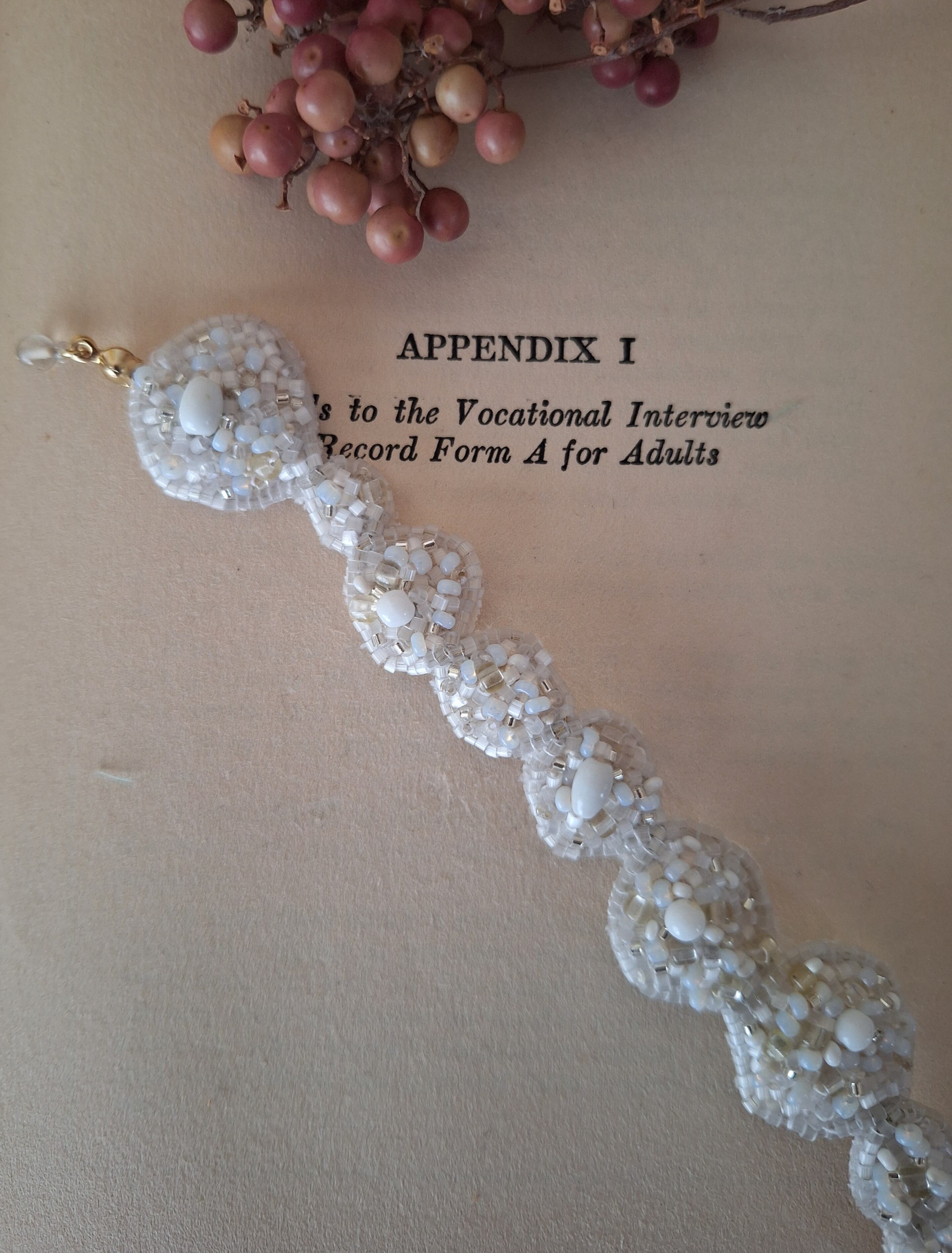 ヴィンテージビーズ、アンティークビーズ、ガラスビーズを真鍮ワイヤーで仕立てた、ブレスレットとサムリング(親指リング/イヤーカフ兼用)のセット。
