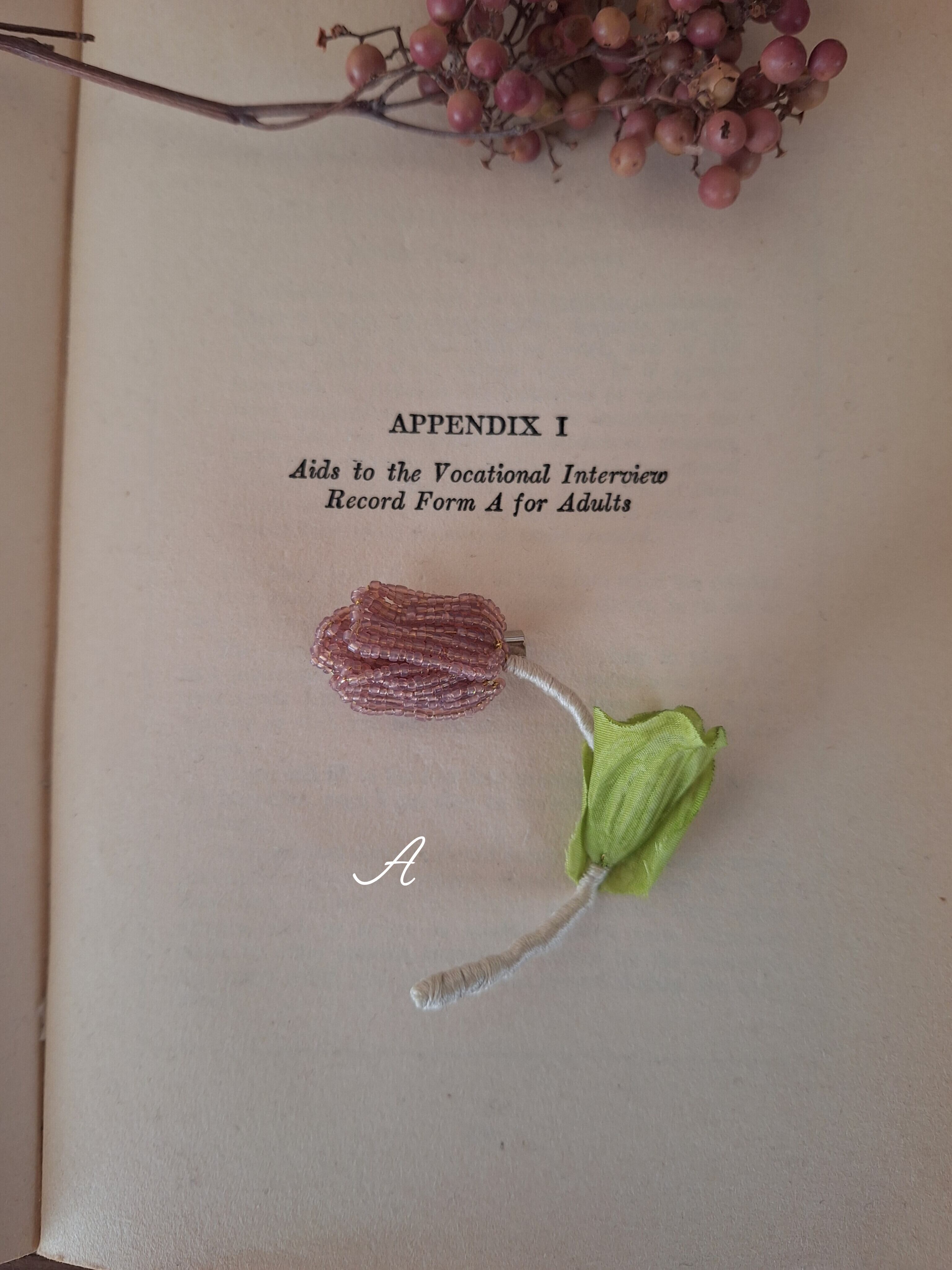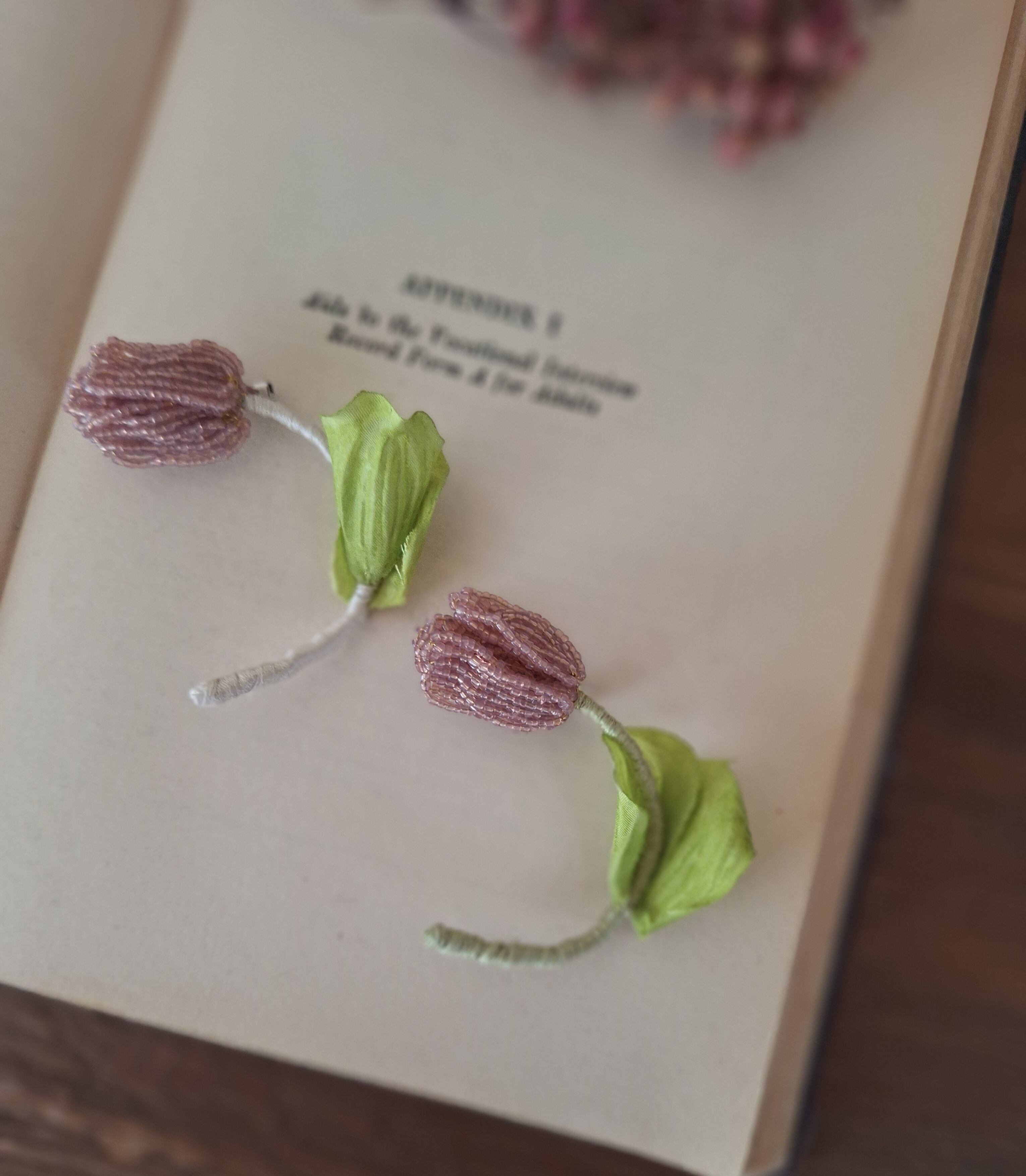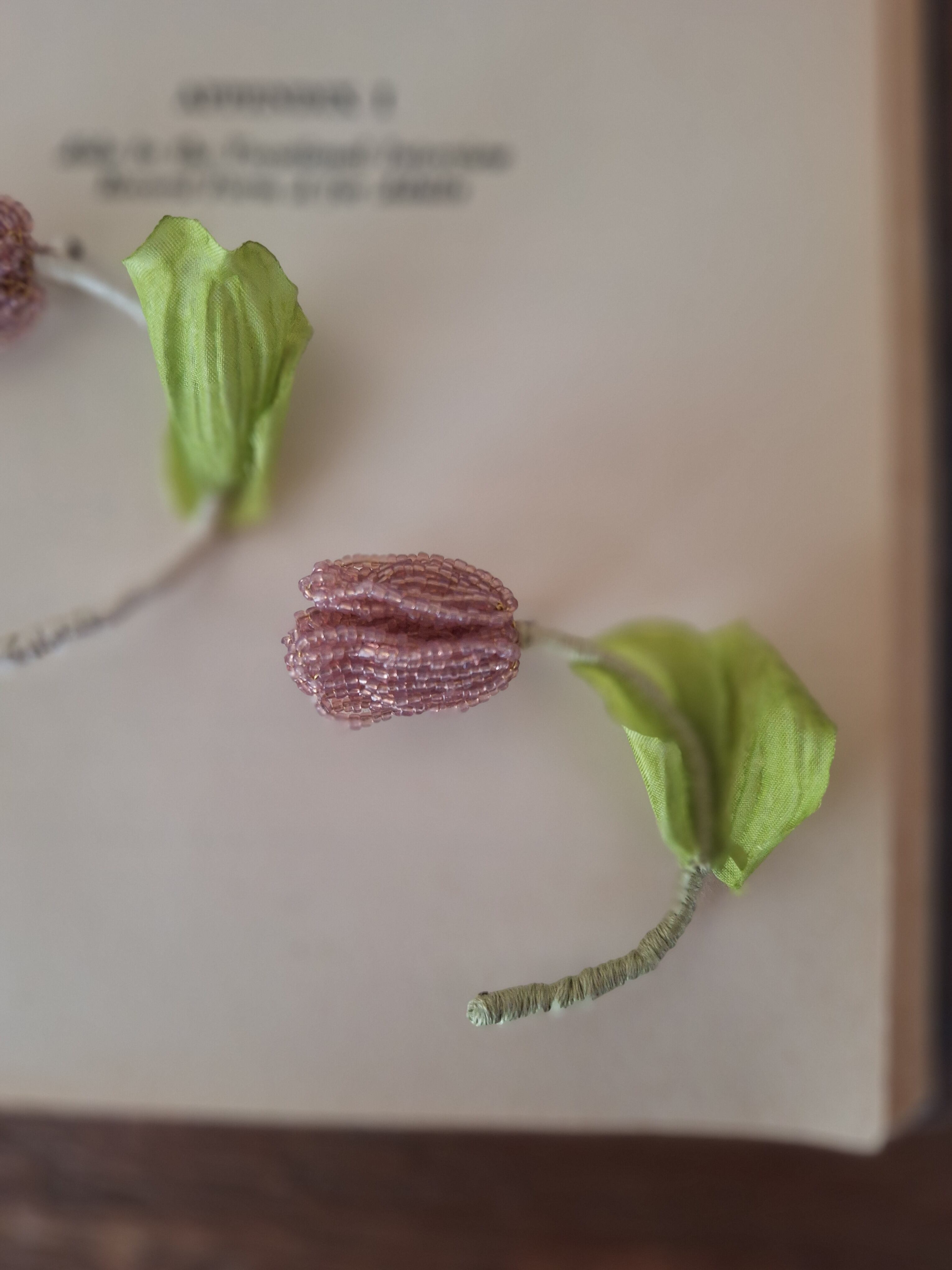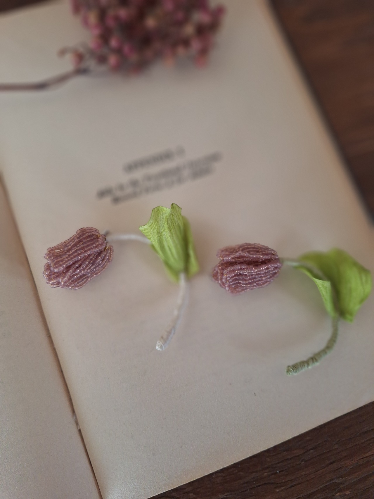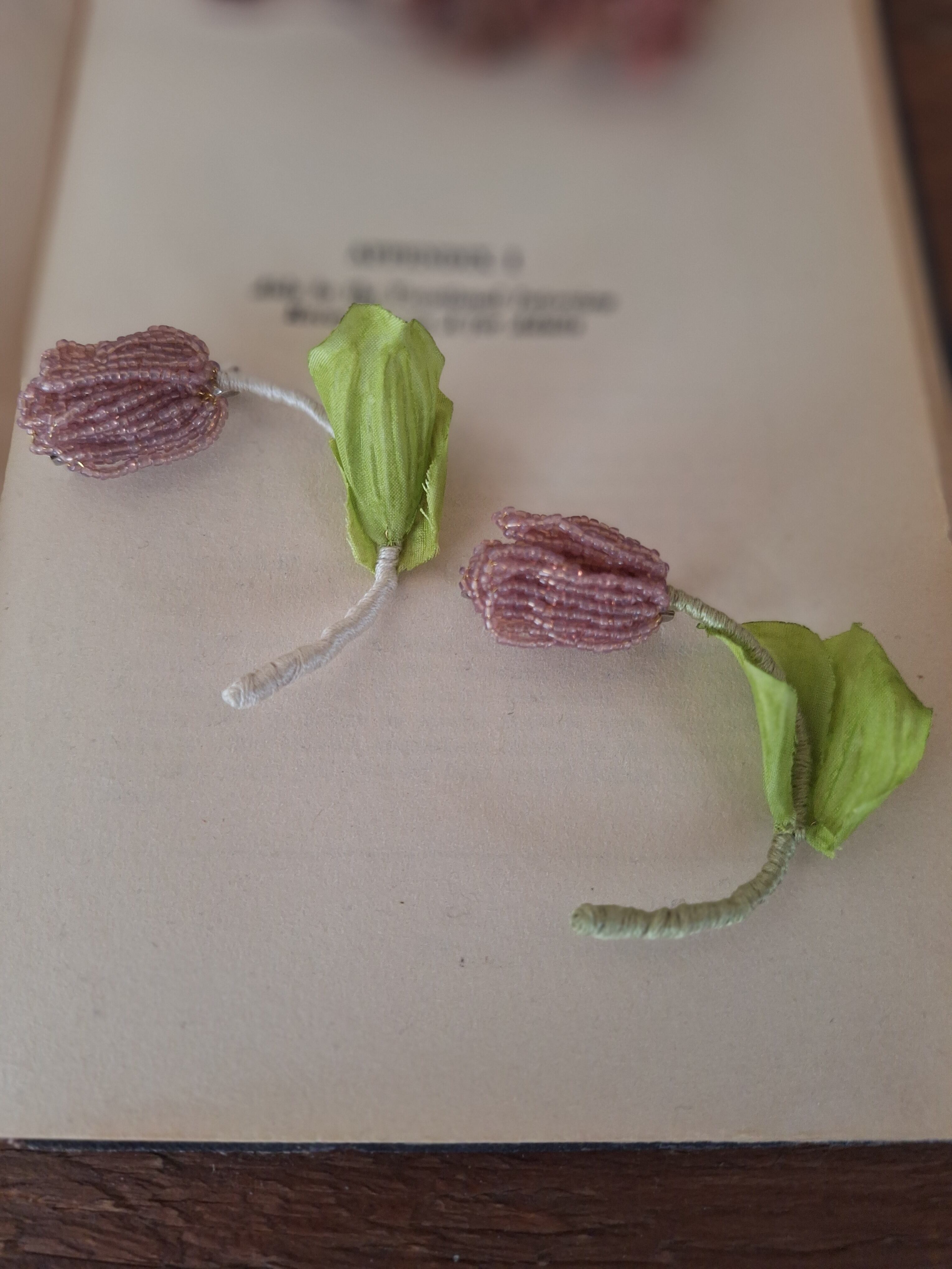 【素材】フランスヴィンテージビーズ、真鍮ワイヤー、刺繍糸、造花