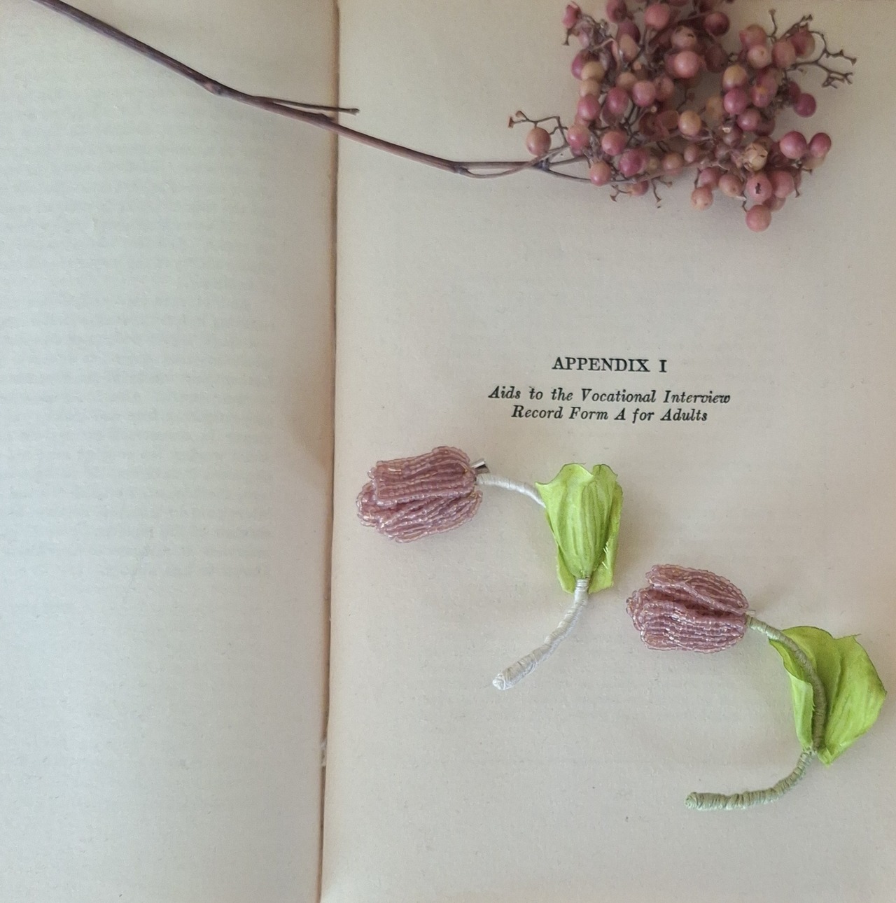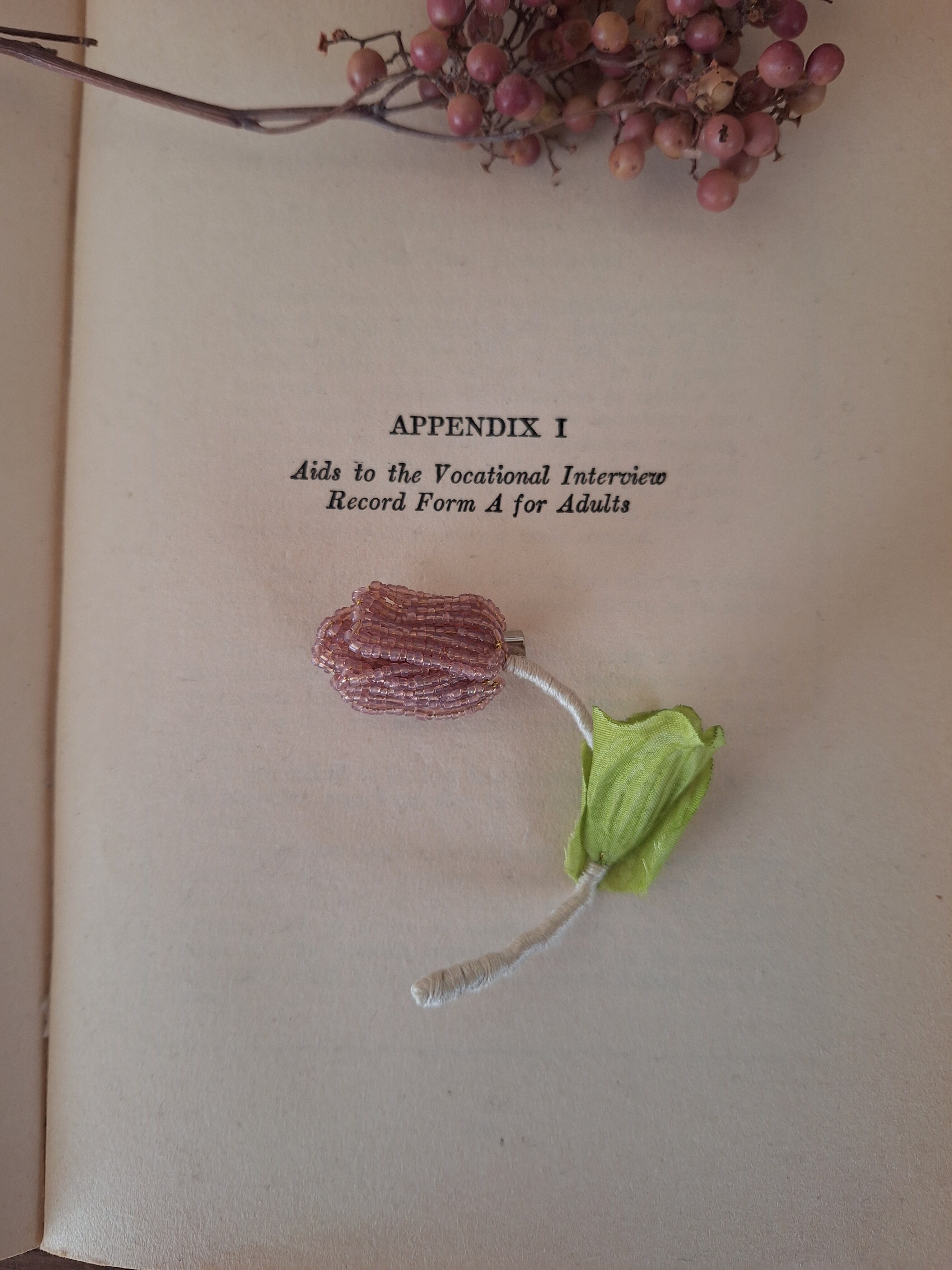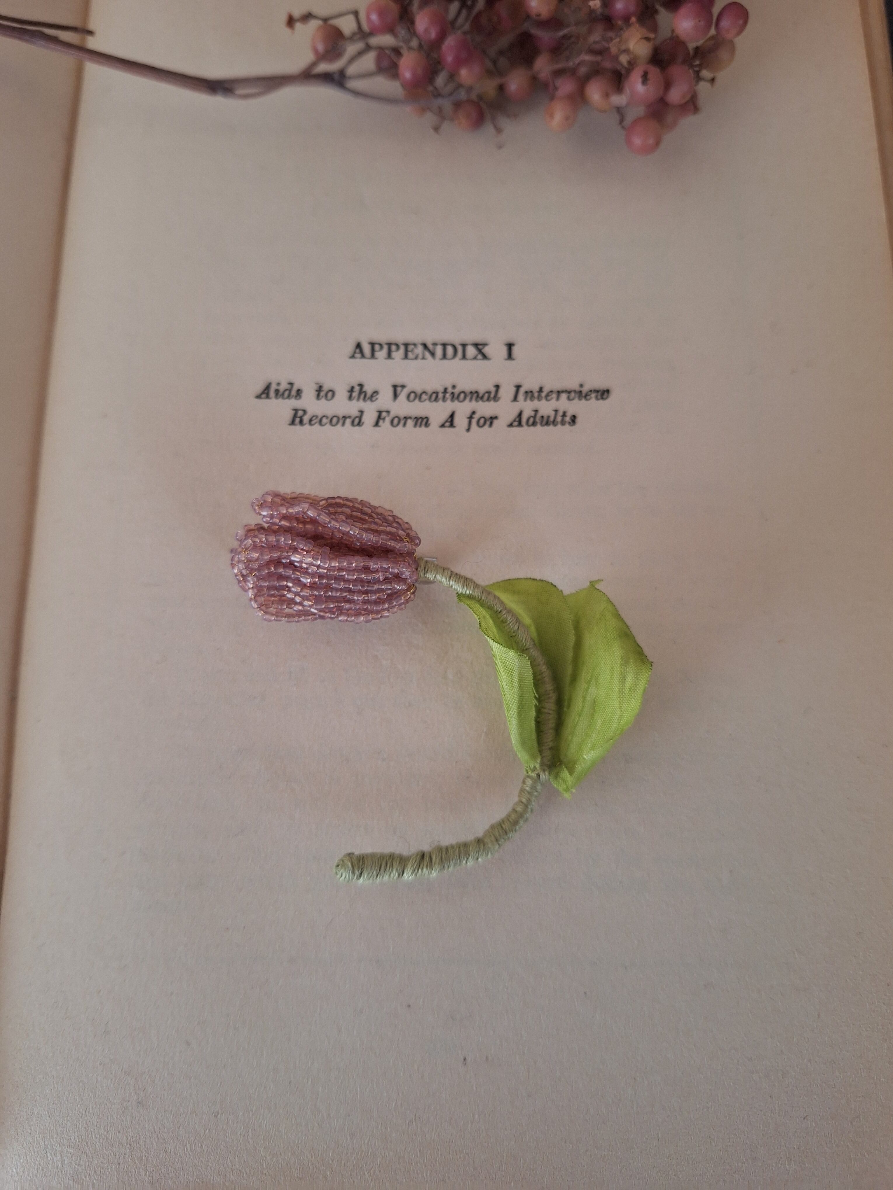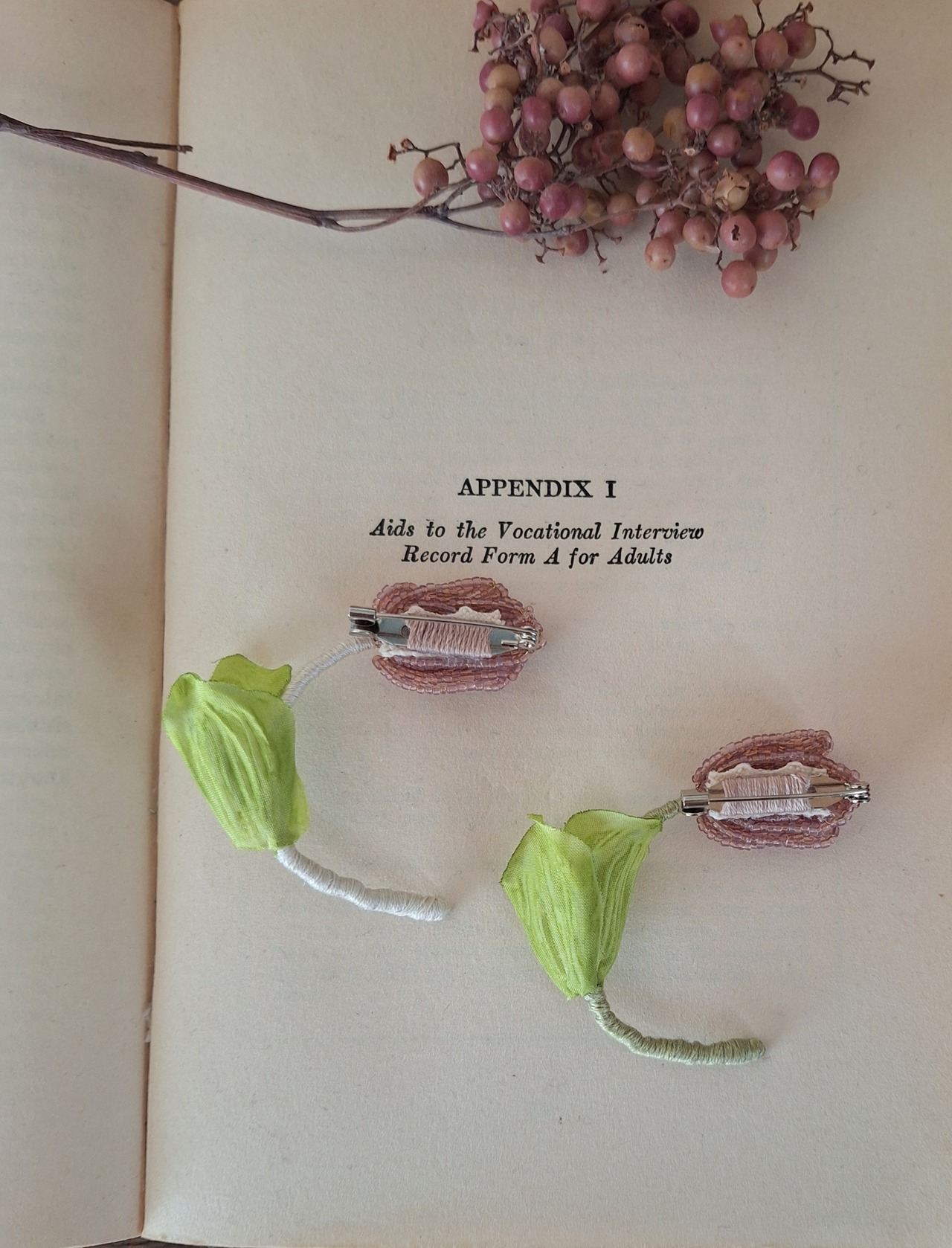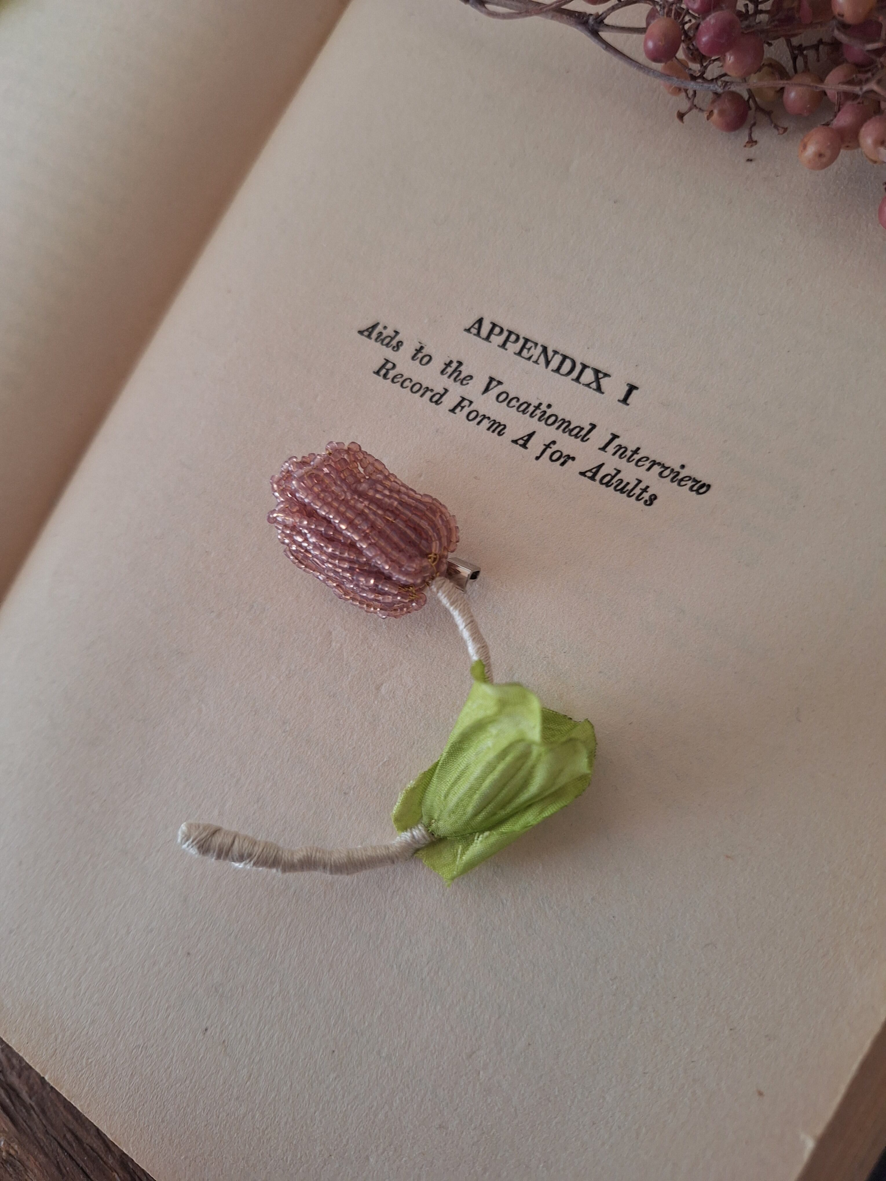 【素材】フランスヴィンテージビーズ、真鍮ワイヤー、刺繍糸、造花
