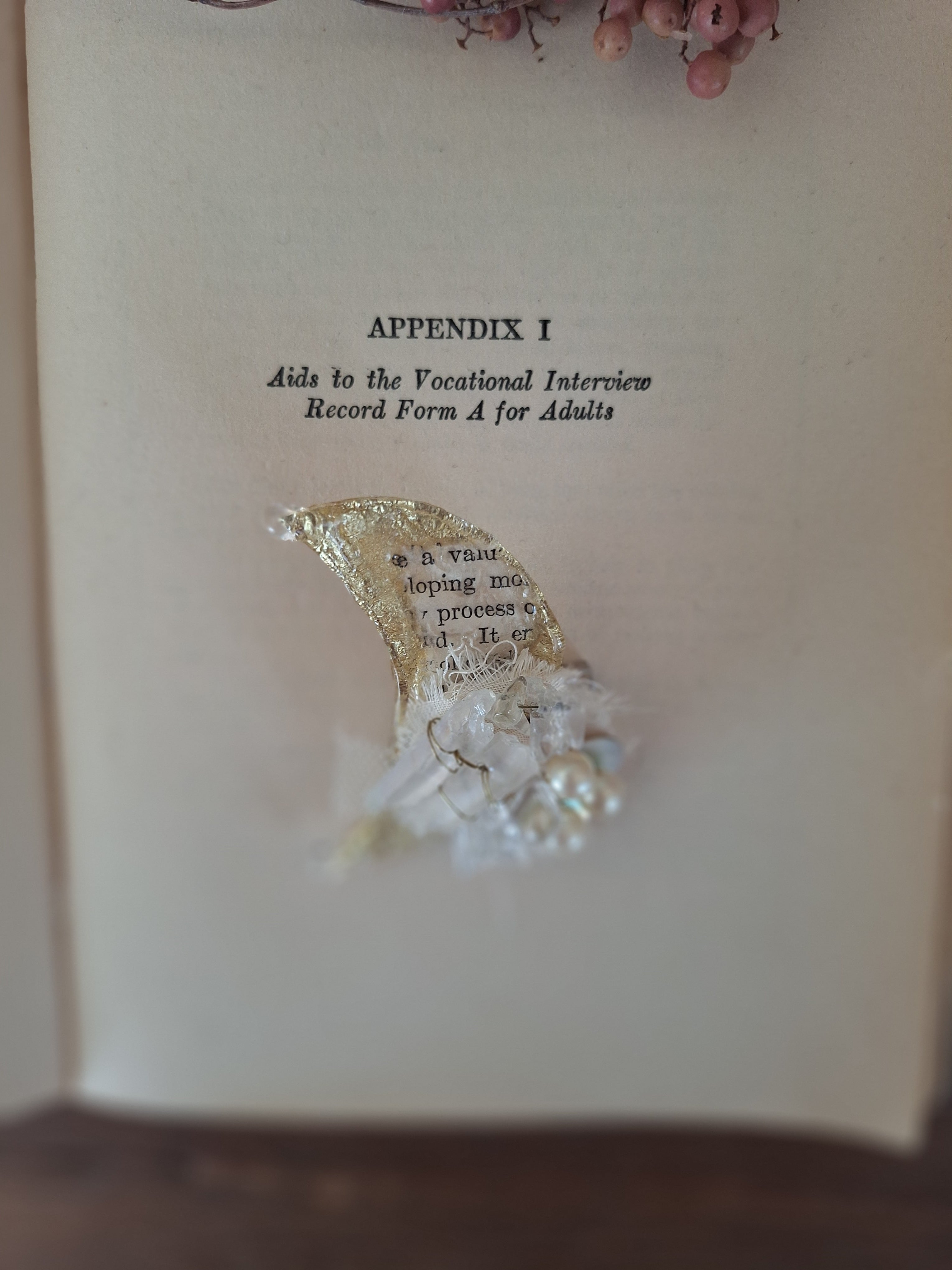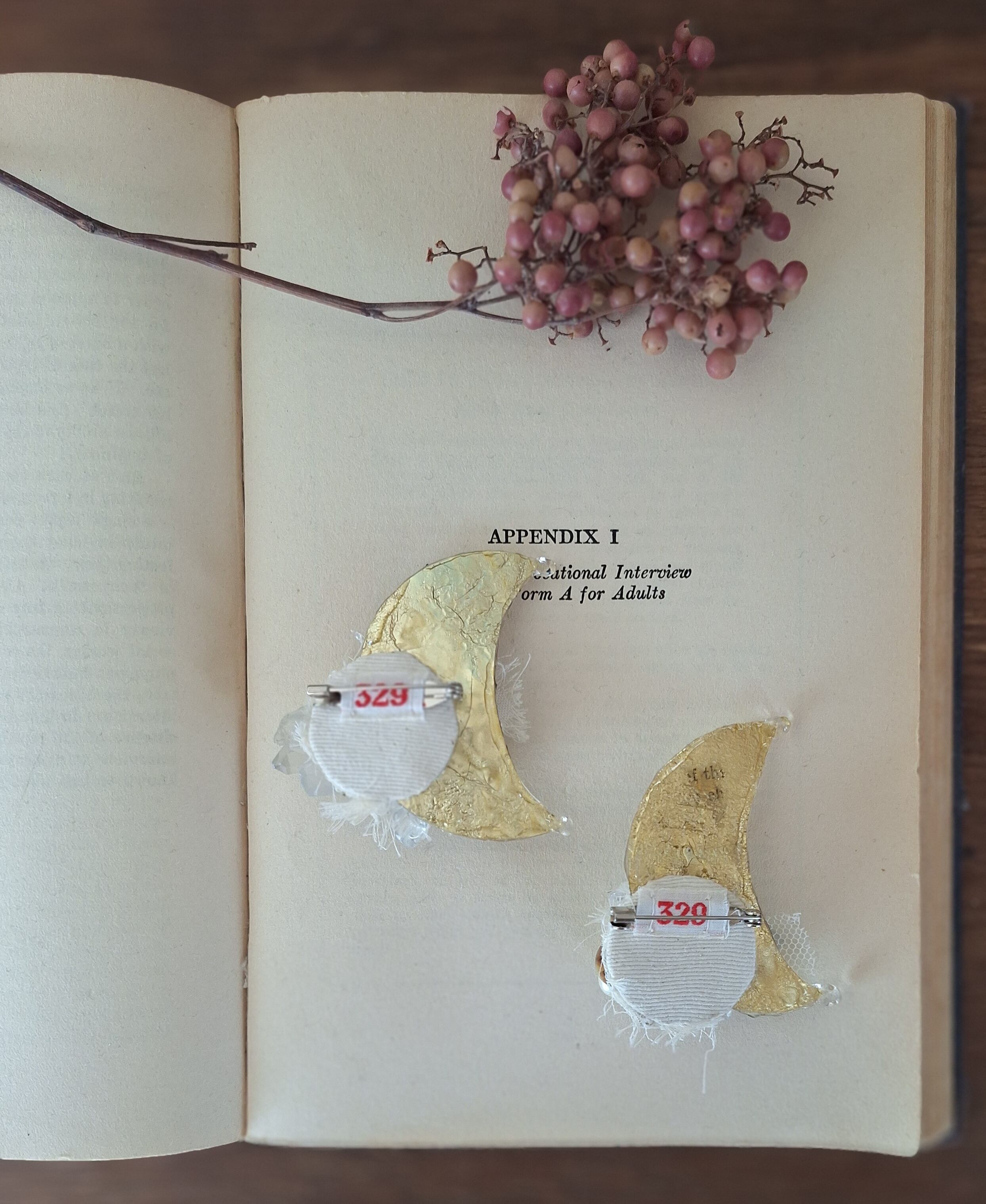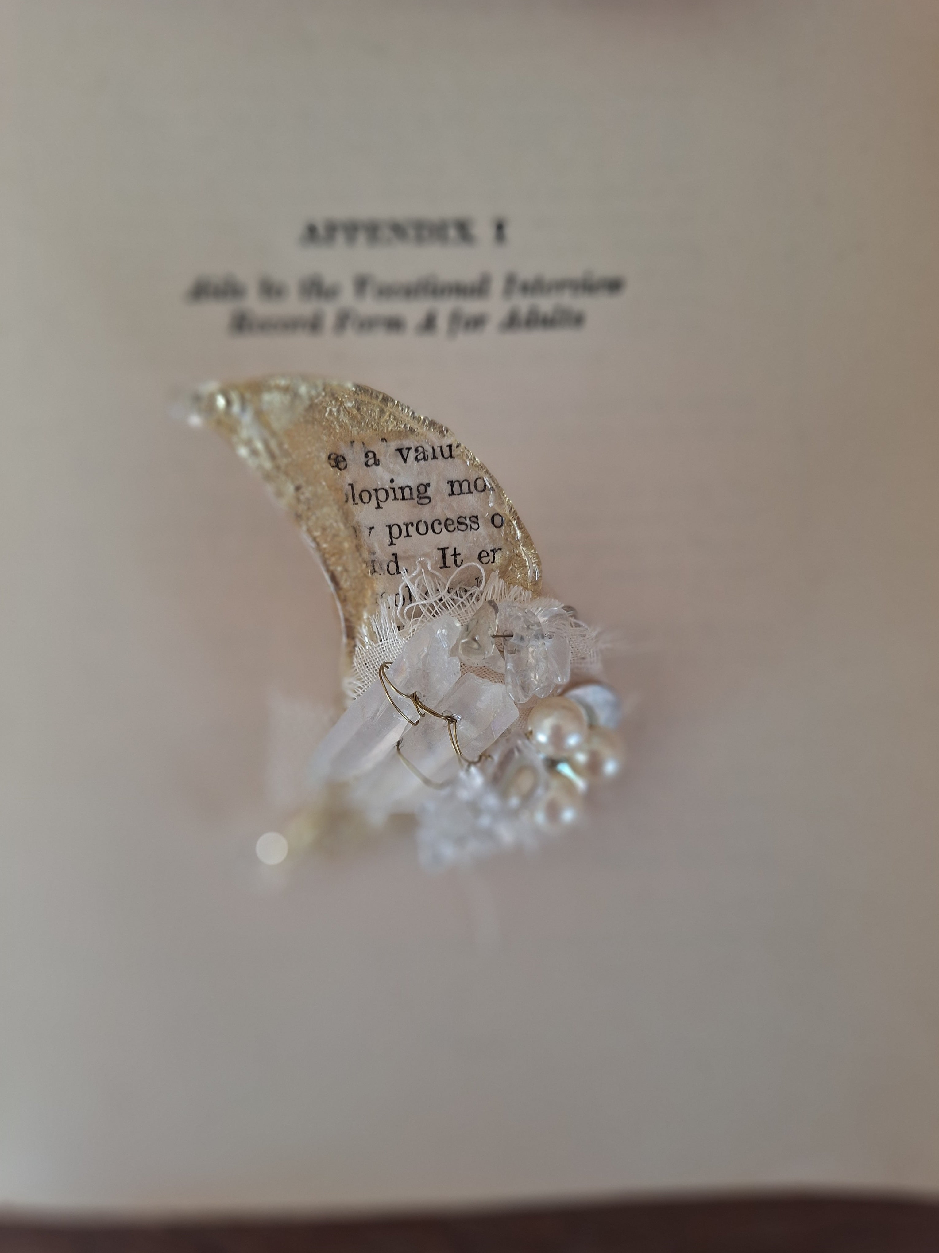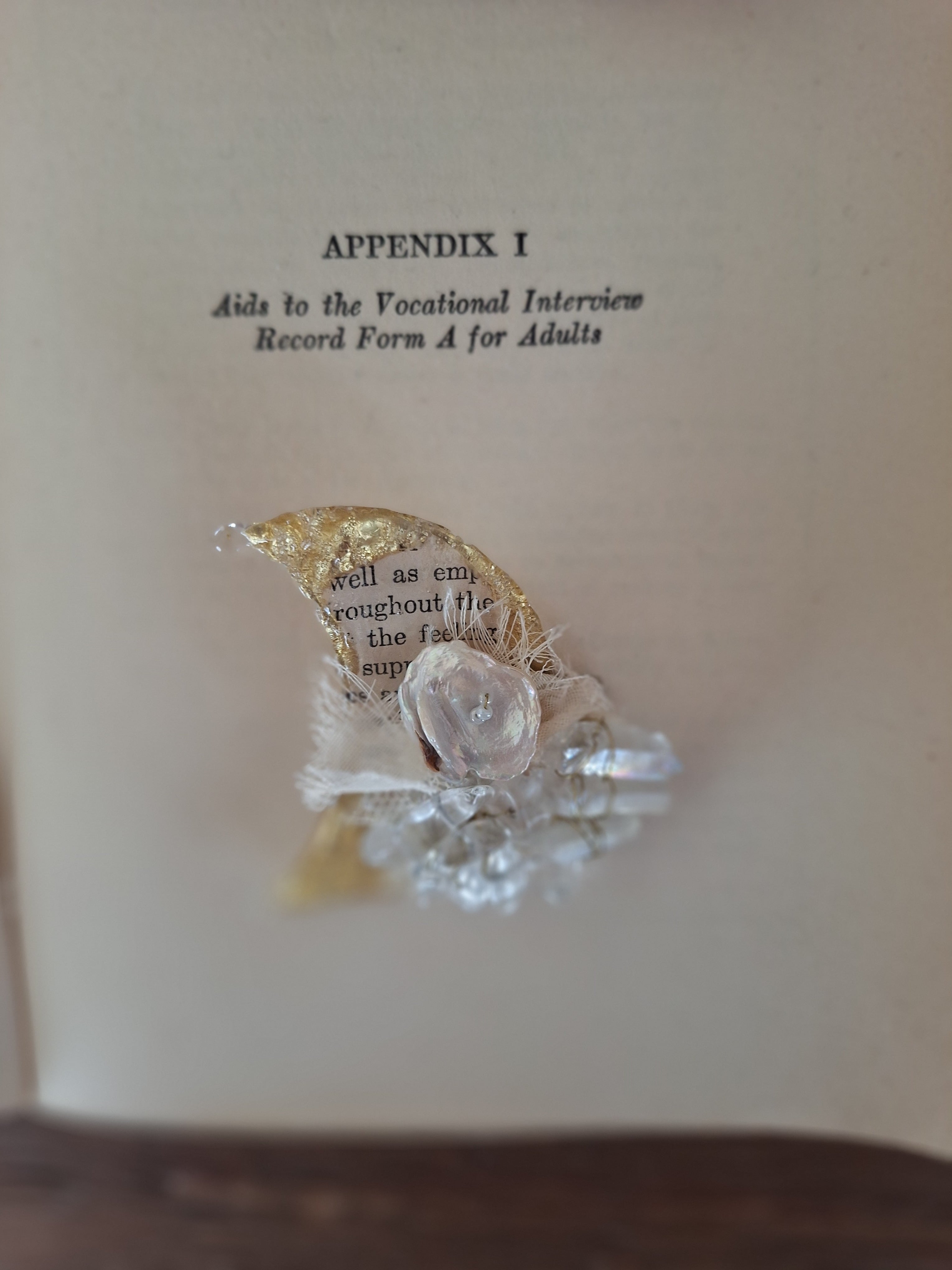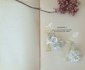 【素材】A.ケシパール、水晶、ヴィンテージビーズ、レース、古書紙片、真鍮ワイヤー、レジン、シークイン(スパンコール)