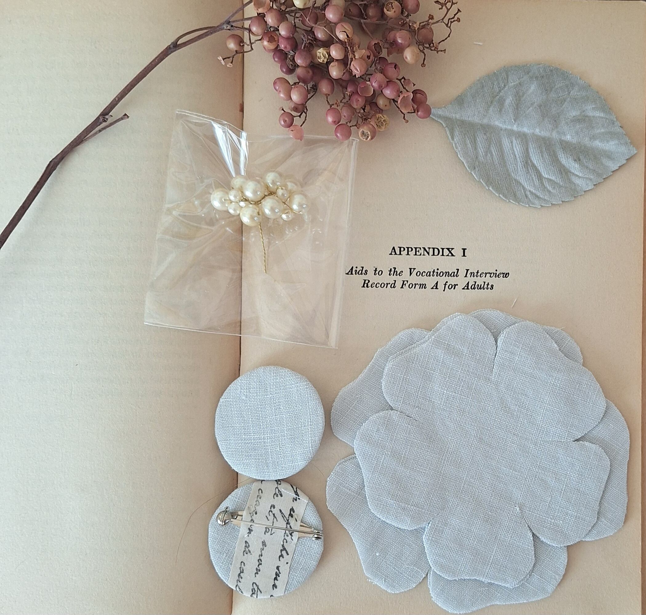 半月リネンの花コサージュ・キット