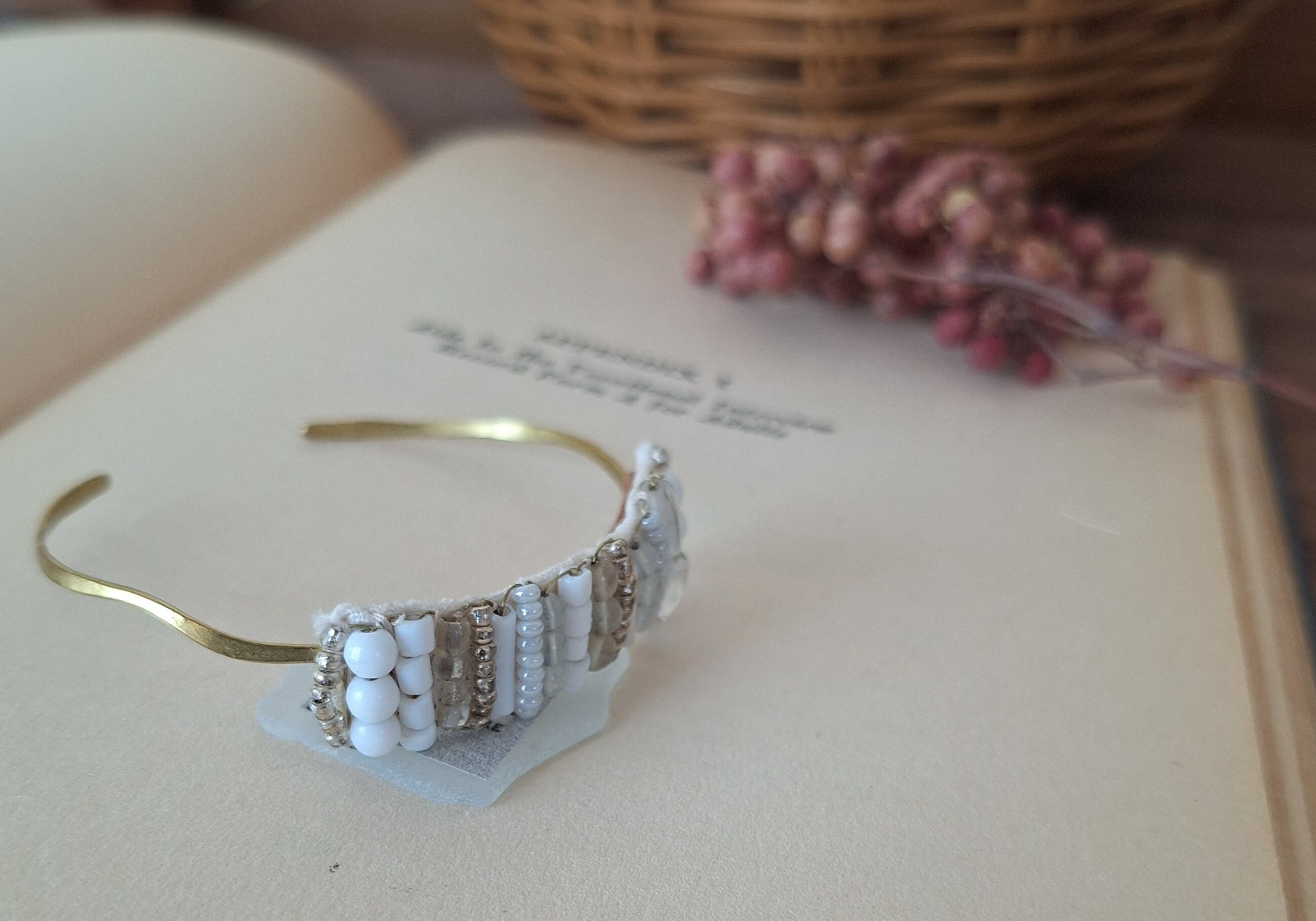 白と透明のニュアンスを基調に、アンティークの質感を残しつつ、手元を上品に彩ります。